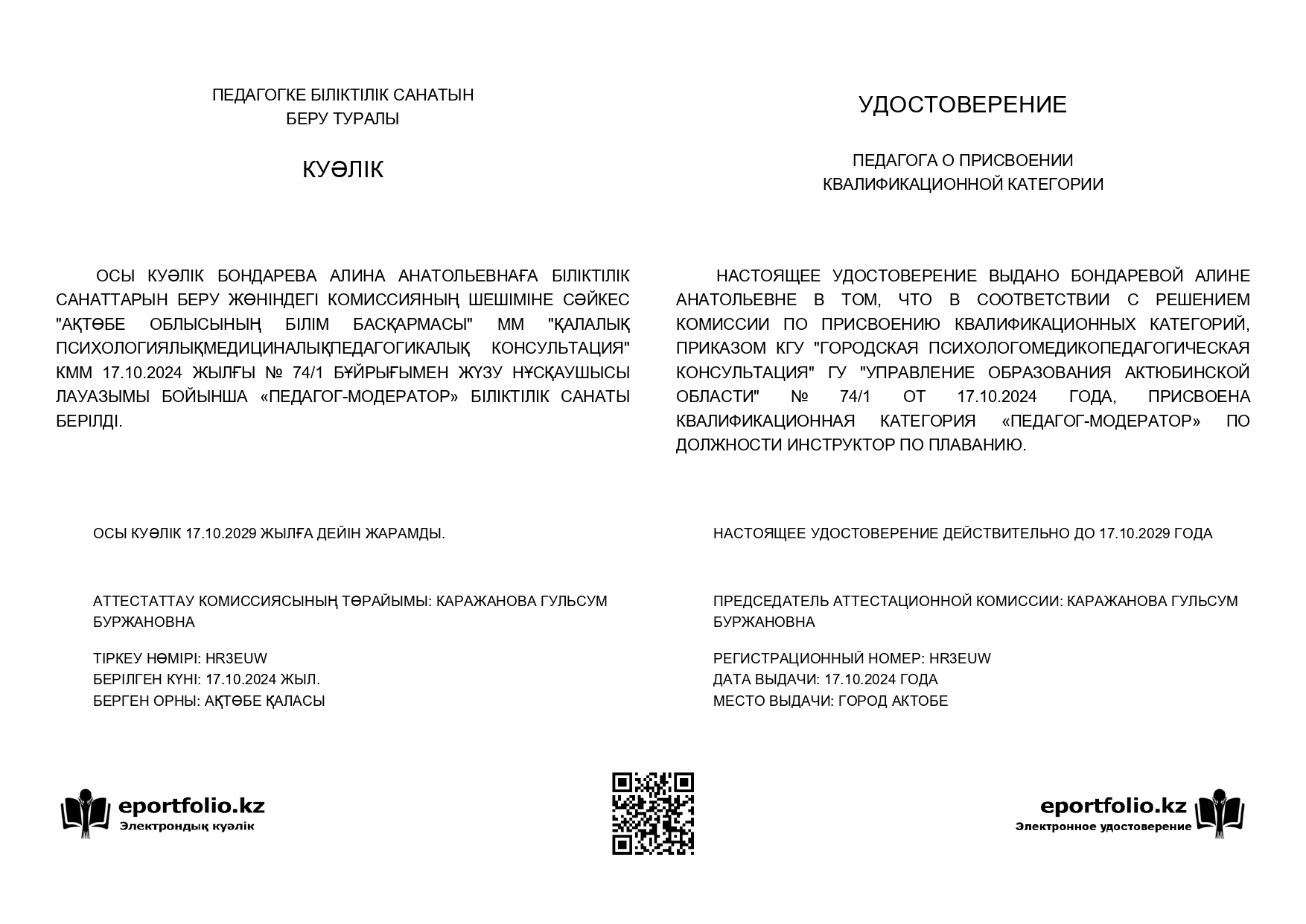 2. АРГУ им. К. Жубанова – бакалавр дефектолог (2018 г.)